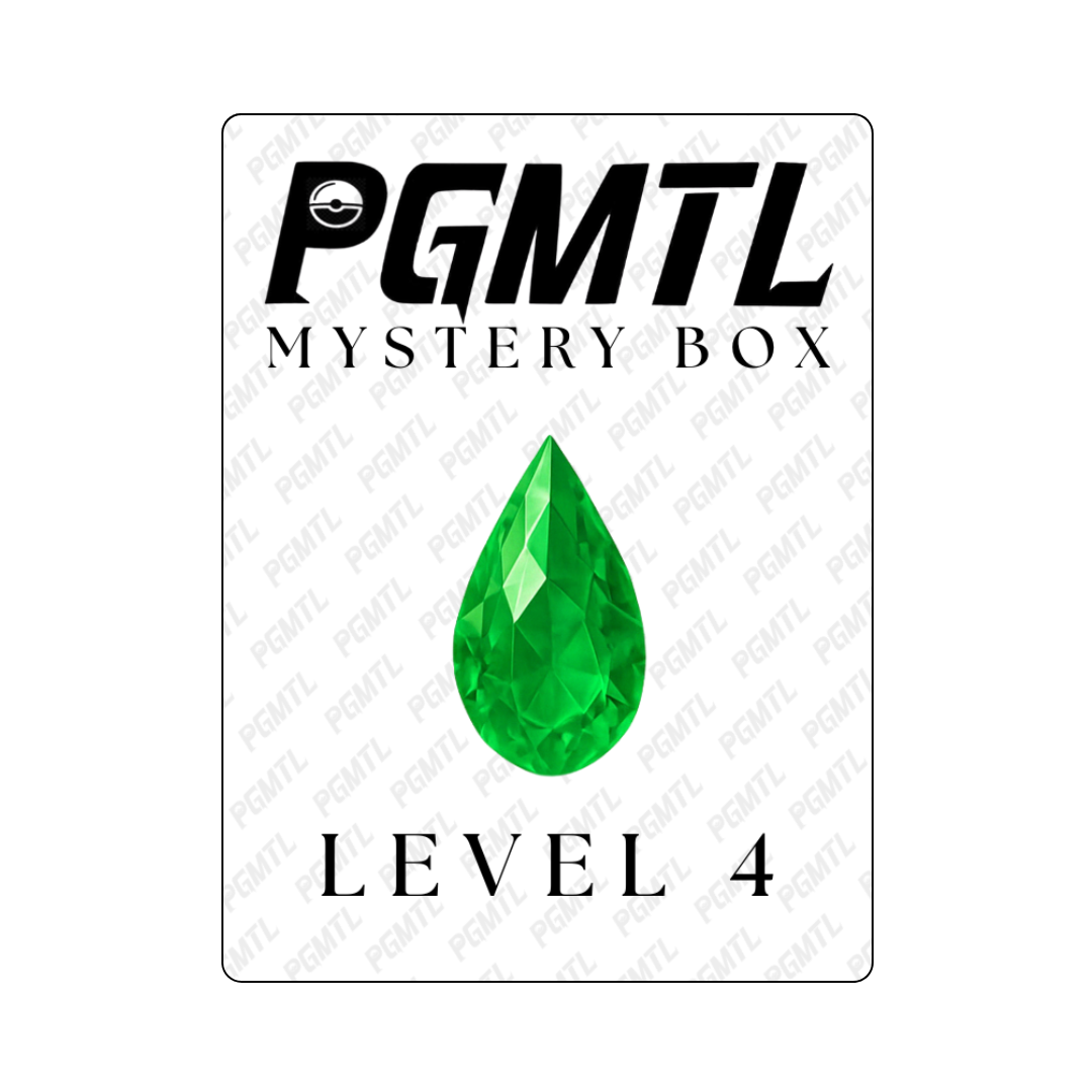 Each box is packed with a curated selection of hidden gems! Inside, you'll find a mix of graded, raw cards and/or sealed booster packs.